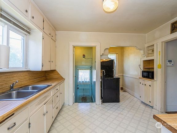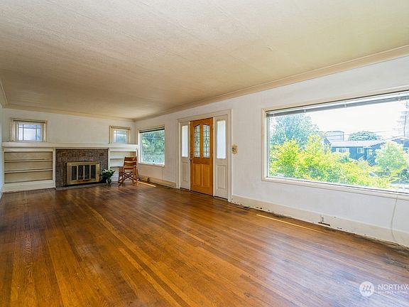 Greenwood, a sought after neighborhood. The hub of Greenwood has everything, shops, restaurants, grocery stores, and bus-lines. Minutes away from some of Seattle’s best parks. A traditional style home with generously proportioned light filled rooms. The bedroom on the main floor could easily be turned into office/den. The backyard with, a little imagination, could be a gardeners paradise, very private. Offers hard to find 4 large bedrooms above ground. Bring your vision w/contractors, it does need some work, but retains some old world charm.