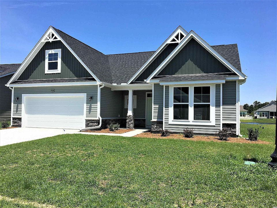 Welcome home to Calabash Station our newest community in the heart of Calabash NC. This Wrightsville 2 story boast 3 bedrooms, 3 full baths, a lower level study and an upstairs bonus room. Structural features added to this home include: Bay window in the Casual dining and French doors on the study. A tiled shower in the owner's suite and a box bay window in bedroom 2. This home comes with a covered front and rear porch, 2 car garage complete with garage door opener and remotes. Full landscaping package with irrigation. Gutters on the home. 30 year architectural shingles. Our design team has also added stone on the front of the home as an accent. 5 1/4" Laminate flooring in the living area. 12X24 tile in the baths and laundry. Upgraded cabinetry with high end hardware. Backsplash in the kitchen. Carpet in the bedrooms and study and bonus room. Quartz counter tops in the kitchen and baths. Upgraded lighting and plumbing fixtures This home will also have a gourmet kitchen with SST hood vent, cook top and wall microwave over a wall oven. Too many features to list. Call for a full list of luxury options. Estimated completion August/September 2023. Fantastic location with easy access to 14 golf courses within a 7 mile radius and close to both North and South Carolina beaches, restaurants and shopping! "Photos are of a similar Wrightsville (Home and community information, including pricing, included features, terms, availability and amenities, are subject to change prior to sal