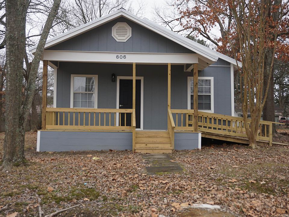Very cute remodel only 5 minutes from the freeway exit, hospital or shopping. New waterproof vinyl flooring, freshly repainted, has a very open floor plan with the kitchen/dining/living all 1 open room. New windows including a beautiful picture window. New insulation blown into the attic. Mini split unit for the AC and central gas heat. There is great countertop space and nice cabinets plus a large pantry in this kitchen. The laundry room with storage cabinets is off the primary bedroom en suite which has a walk in shower and a linen cabinet. All of the bedrooms have ceiling fans and great closets and there are 2 of them in the primary bedroom. There is a wonderful covered front porch on this super sweet house.
