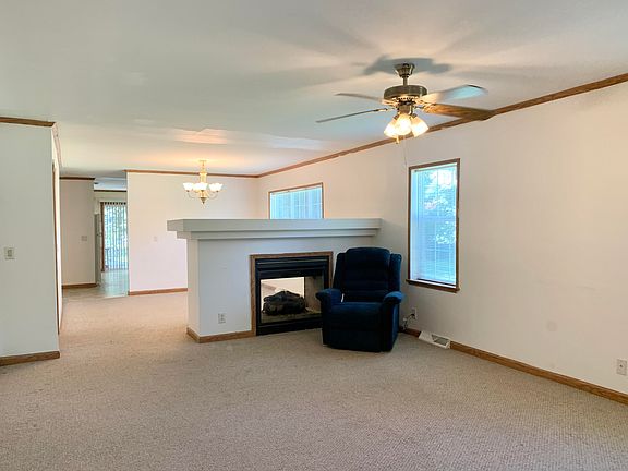This 2004 Liberty Homes 3 bedroom, 2 full bathroom home is situated on a pretty .88 acre level lot. There is a double sided gas fireplace between the dining room and living room. Large kitchen with and island and sliding doors to a deck. Primary bedroom suite offers a spacious bath. Home is set off the road with a nice front yard and very large private back yard. Some cosmetic updates needed, property is being sold in ''as is'' condition.