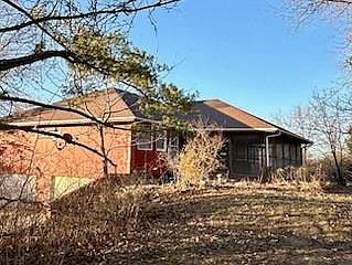 Major Fixer-upper with lots of potential. Unique floor plan - each side of entry way is identical floorplan with living/dining/brms/bath(s) with shared kitchen/pantry in between. 2 outbuildings: 24X36 metal 3 car garage and 18X24 metal 1 car garage. Sits on 4.76 acres (2 lots: 8 and 9 Trails End Subdivision) with beautiful pond behind the house. House is with in Lawson City Limits and is on public sewer. There is NO sellers Disclosure for the house, or the land. Being Sold "as is". Seller is providing structural engineers report and termite report. Agents all reports including plat is in supplements.