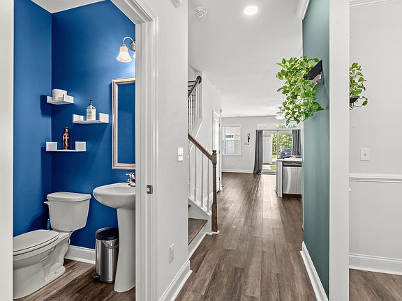 This newly built townhome is only 2 years old and move in ready. The downstairs has beautiful LVP flooring that is throughout the whole main level. Downstairs there is a half bath, a flex room that could be used as an office or dining room, kitchen and family room. The kitchen has 42'' upper cabinets with crown molding, stainless steel appliances, Shadow Stone Marble countertops, white subway tile backsplash and modern pendant lights. The master upstairs has a private bathroom and a huge walk in closet. There are two additional bedrooms upstairs another full bathroom and laundry. parking is a breeze with a private detached garage and overflow parking. Foxbank is a master planned community that has an elementary school, two pools, fitness center, dog park, lake and shops and restaurants.