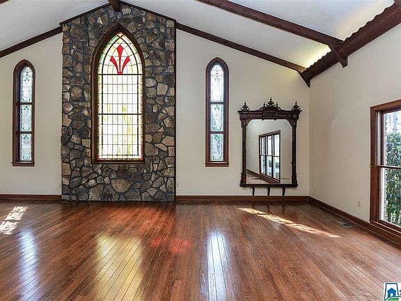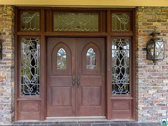Designed with Distinction! Picturesque home holds history within its walls: marble floors from the old Birmingham Train Terminal Station, leaded and stained glass from area church and homes of yesteryear, two custom staircases, Gothic stone arches........so much more to see. 18 cathedral ceiling in the Great Room showcases the stained glass, Gothic arches & custom stone 2 story fireplace - Amazing! Main level master bedroom, den with fireplace, kitchen with eating area.Upstairs: 2nd Master with fireplace, 2 large bedrooms each with private bathrooms. 2 custom staircases - one descends from the landing above the great room and 2nd becomes the pajamas stairs leading to den and kitchen. Circular driveway surrounds this home dropping guest at the front door and groceries at the back. 1+ acres provide level areas to play, a dog run and shed. Guest house : living area, kitchen, bath & bedroom. 1 car detached garage plus 2 car basement garage.