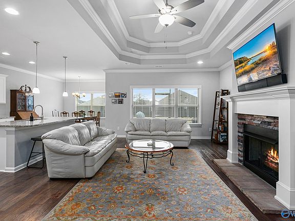 Meticulously maintained 4 bedroom and 2 bath brick rancher. It has all the bells and whistles! Beautifully appointed from the extensive crown molding and trey ceilings to the exquisite wood floors. The open kitchen features a granite island, ss appliances, a gas cooktop and pantry. The generous master ensuite boasts a luxurious bath with a tiled shower and double vanities. Enjoy the beautiful back yard from the screened porch. Amazing HOA amenities include a pool, clubhouse, playground, tennis & baskeball courts! Easy access to Town Madison restaurants, the Trash Panda Stadium, Redstone's Gate 7 & the Hsv Airport. Note: Photos are from a previous listing.