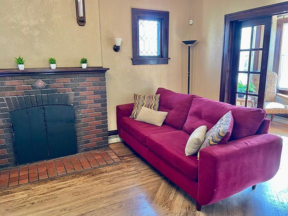 Almost 100 years old and still a beauty! Gorgeous woodwork and hardwood floors on main floor. Wood fireplace in living room. The four-season porch in front will quickly become your favorite spot for relaxing! This large corner lot is right across the street from the Mississippi River with easy access to Wilson Park. Large kitchen with a breakfast bar and extra built-in shelving plus plenty of room to add a dishwasher. Formal dining room with bay window is perfect for entertaining! Unfinished basement with lots of storage areas - could be finished off for family room area or use as is for an exercise room. Two-car garage plus room for three cars to park in the driveway! INTERIOR PHOTOS SCHEDULED ON 5/3/2025.