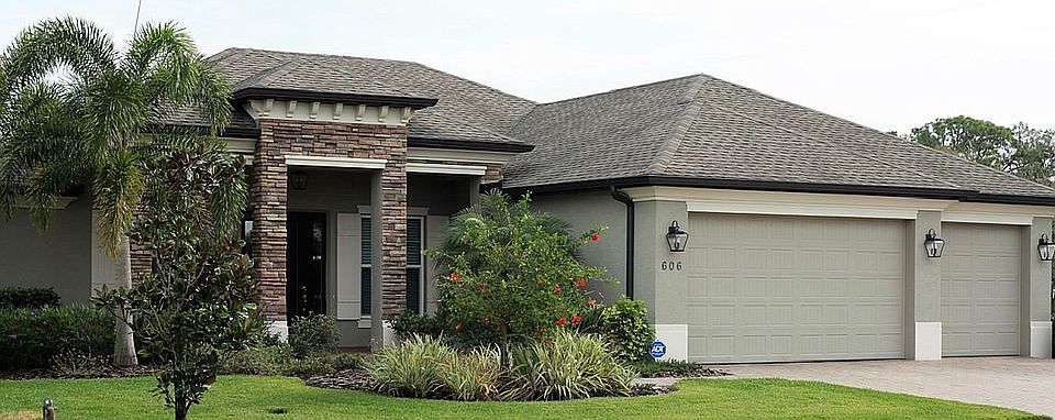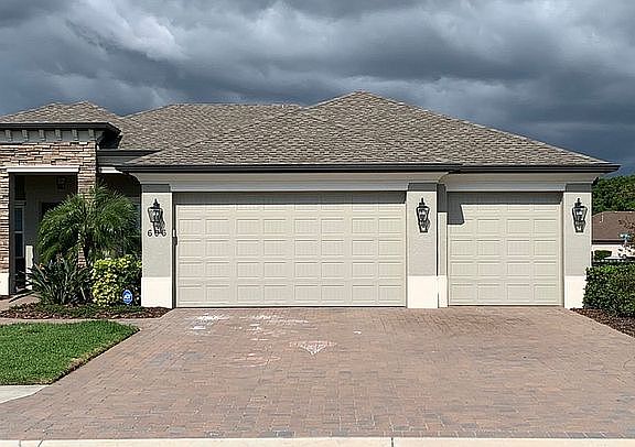 Pristine LAKEFRONT JEWEL in Greyhawk Landing! 5 BEDROOMS, 3 FULL BATHS + 3 Car Garage, Sam Rodgers' Magnolia Model with rare Bonus Room on a premium 1/4 acre corner lot. Family Size home is Storm Protected with HURRICANE IMPACT Windows and Sliders. Open-Space-Living is evident as the Great Room floor plan flows easily to the paver lanai. Chef's delight gourmet kitchen has 42 inch soft-close cabinets, contrasting quartz counters, brick pattern subway tile back splash. Large single-slab center island seats 5. Stainless GE Profile appliances with gas cooktop, built-in oven/micro/convection are accentuated with over and under lighting. A wonderful Breakfast Cafe offers command-center bay window views of the 20X20 SALTWATER pool, lanai and glistening lake sunsets. Luxurious Master suite has garden door pool access, en-suite bath features doorless step-in shower, double sink vanity and spacious walk in closets. Bonus Room has bath and pool access and can flex as BR, Office, Home School, Play Room. Enjoy BBQ culinary creations and relaxed conversation around the outdoor kitchen and covered dining area. Just a short walk to the lakeside recreation area with fitness center, heated pool and wonderful kid's playground. Entry to Greyhawk is guarded and gated. Great schools and minutes to Costco, Publix, Town Center shopping and 30 min to the world's top rated beaches. This family home is truly a gem!