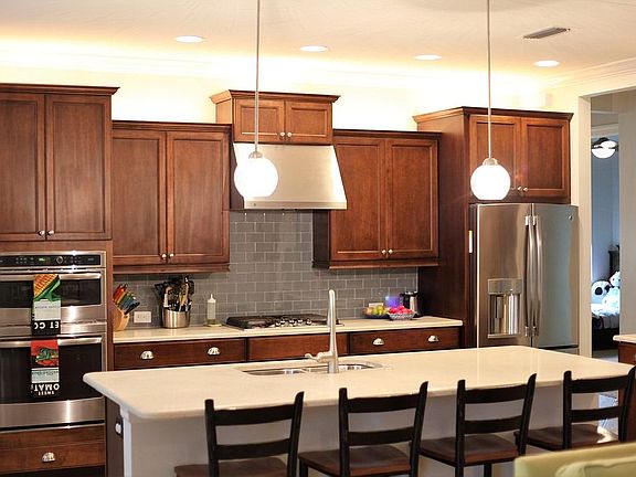 - Appliances: Dishwasher, Disposal, Range, Refrigerator, Built-In Oven, Convection Oven, Exhaust Fan, Microwave, Bar Fridge, Gas Water Heater, Washer, Dryer, Range Hood, Trash Compactor