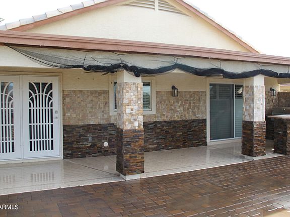 Location, location, location ... Golf course lot on the 4th hole and White Tank Mountains views! This lovely home has an open and bright floorplan with vaulted ceilings and many upgrades including plantation shutters on the windows AND the patio doors. Security doors with screens and glass lead to the extended patio. Access from master bedroom too! Your backyard includes 3 citrus trees and a built in BBQ and bar perfect for relaxing or entertaining!