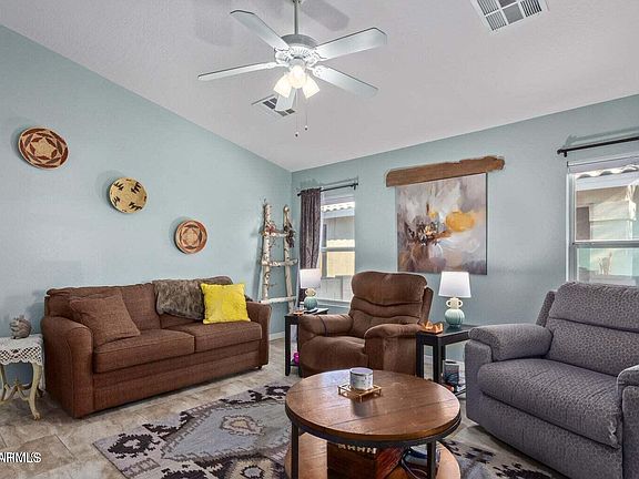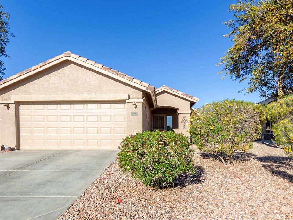 Welcome to your future home in the wonderful adult community of Sundance! This charming 2-bedroom, 1.75-bathroom gem invites you in with its spacious living room, featuring vaulted ceilings, fresh neutral tones, and easy-to-care-for tile flooring. The cozy eat-in kitchen is perfect for cooking up a storm, with beautiful granite countertops, sleek paneled cabinets, and all the built-in appliances you need, plus a convenient pantry. The primary bedroom is a true retreat, offering soft carpeting, direct access to the backyard for that seamless indoor-outdoor vibe, and an en-suite bathroom with dual sinks for added ease and comfort. Step outside to enjoy your private oasis - a full-length covered patio, stylish pavers, and low-maintenance artificial turf make it the perfect spot to relax or e perfect spot to relax or entertain. Don't miss this amazing opportunity to make this home yours!