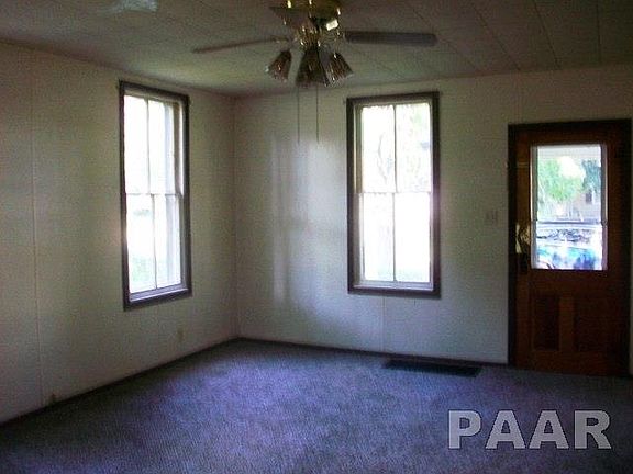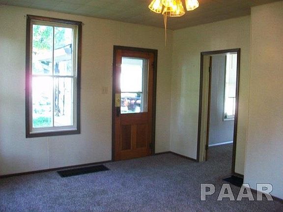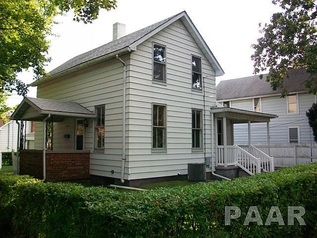This 1 1/2 story 3BR/1BA home sits on a corner lot & offers lots of curb side appeal. It sits across the street from beautiful South Park. New carpet in liv., dining, & main fl. bedroom. Roof on house new in June 2017. Extra large garage w/workshop area. There are no exemptions on this tax amount. According to the Treasurer's office the tax amount with an owner occupied exemption would be approximately $677.37. Sellers have never lived in the house. There are 2 porches & a nice private patio area between the garage & the house.
