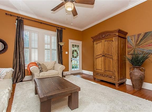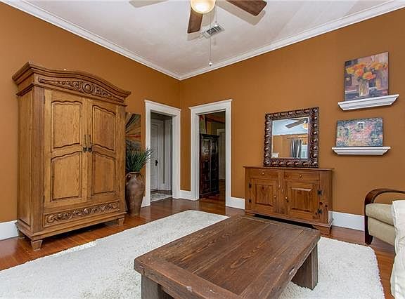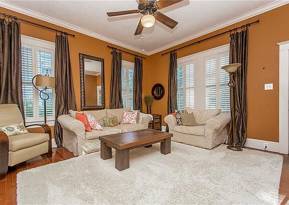 Only a few blocks from thriving historic downtown is this raised craftsman on 4 city lots. Original antique heart pine floors; 10' ceilings; crown molding throughout; granite countertops, glass tile backsplash; lots of natural light via large paned glass windows; original doors & hardware; enjoy your own fenced private oasis with multiple patios, gardens, brand new large deck, porch with swing; no flooding in 89 years; durable cypress siding; 4-yr old A/C condenser; 5-yr old roof; gas range; a rare gem!