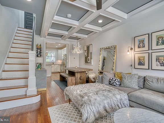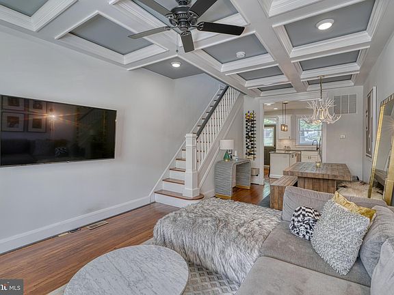CHAP Renovation with PARKING! Walk in to discover a beautiful open layout with wood floors, recessed lighting, trayed ceiling, separate living & dining rooms, gourmet kitchen with an abundance of natural light, white cabinets, granite counters, stainless appliances, an island and walkout to the rear parking pad. The 2nd floor has 2 bedrooms, 2 full bathrooms, private deck off the rear bedroom. The finished lower level has 2 finished rooms that could be guest rooms, home offices, play rooms plus a full bathroom. Approximately, 5 years left on the CHAP tax credit.