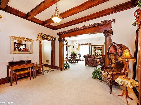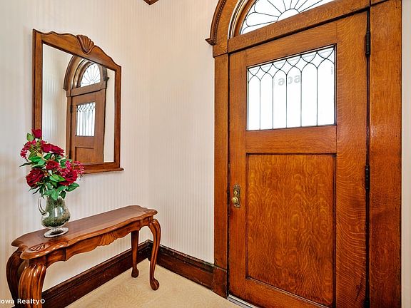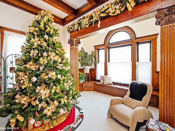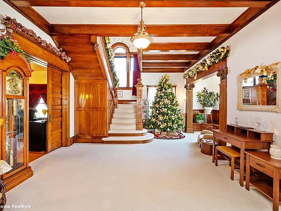 1907 Grand Greek Revival. One of the towns original 5 Mansions. Spectacular front porch with Corinthian columns and architectural terracotta accents. Hard to find Historical charm and character. Features include formal foyer, a formal living/dining room with original old quarter-sawn oak floors and woodwork, and a TV room, gorgeous quarter-sawn oak woodwork with Corinthian carved topped columns and large oak framed Queen Ann style windows with leaded glass. 10 ft ceilings on the main and 9 ft on the second floor, gas fireplace with a beautiful oak mantel and Corinthian topped columns. Grand old staircase plus 2nd back staircase. Large updated kitchen with tall cabinets, ample counter space, wine cooler and SS appliances. Convenient 1st floor laundry. Impressive 3rd floor attic ballroom that would be great for the kids as a game/playroom. Gas forced air heat and central air. Would be nice Air bnb or an amazing home. WOW Owner has original blueprints. You must see this home.