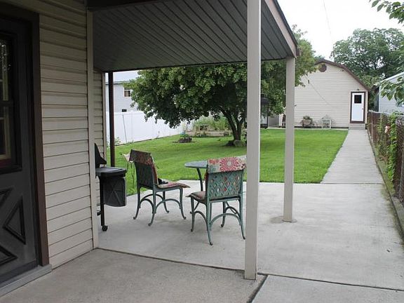 Semi with 3 private bedrooms, over-sized 2 car detached garage with electric & walk-up steps to storage above. Replacement windows throughout home, appliances remain, updated electric, newer roof on house & garage. Attic could be finished into a fourth bedroom & room off kitchen could be a great walk-in pantry. Lovely yard with covered porch & patio area.