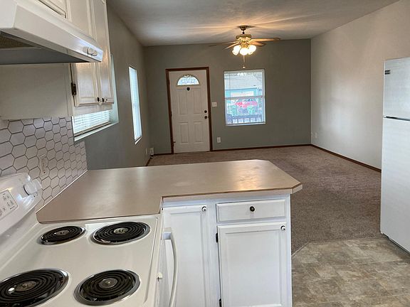 Cozy cottage with open floor plan and high ceilings. Recently painted and updated bathroom. New blinds. Newer kitchen appliances. Friendly neighborhood. Lot shared with home owner who maintains the yard. Outdoor seating areas and garden space available. Measurements: The living room is 12' x 13' The dining room is 6x 5 with a breakfast bar that fits two. The main bedroom is 10' x 10' and closet that is 2x6' The smaller bedroom is 10' x 9' with a half size closet. There isn't room in the bathroom or kitchen for any additional furniture. Owner pays water, sewer, and garbage. Renter has rental insurance policy.