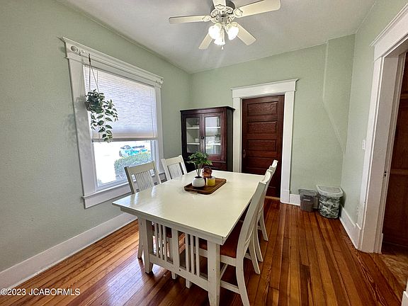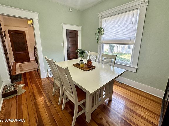 Welcome to 606 S Williams St in California, MO where small town living meets the timeless charm of an older home. This two-story gem, built in 1915, is a true testament to craftsmanship & character. This well-kept home exudes warmth & comfort from the moment you step through the front door. As you enter, you'll be captivated by the amazing original pine wood floors that grace most every room, creating a sense of nostalgia. The main floor boasts a more modern kitchen, a formal dining room & a cozy living room where memories are made. The convenience of a full bathroom, complete with laundry facilities (washer & dryer included), adds practicality to everyday living. A mud room leads you to a two-car garage or the fenced backyard, where a shaded patio invites you to relax & unwind. Ascending the beautiful wooden staircase, you'll discover the upper level, offering four charming bedrooms that provide peaceful retreats after a long day. The upper-level bathroom features a soaking tub, beckoning you to indulge in a soothing bath, a true oasis of relaxation. Throughout the home, the original wide wood trim showcases the craftsmanship of a bygone era, adding a touch of elegance to every corner. In addition to the attached 2-car garage, an extra 1-car detached garage is located at the back of the property, offering ample space for storage. The roof, a mere 10 years old, provides peace of mind and ensures long-lasting protection for years to come.Outside, a covered front porch with a swing awaits, inviting you to sit back and savor a refreshing summer breeze. Two majestic trees grace the south side of the home, providing ample shade during warm summer days. The landscape is adorned with mature bushes framing the front of the house and beautiful flower gardens surrounding each tree, creating a picturesque setting. Don't miss the opportunity to own a piece of history in the friendly town of California, MO. Embrace the charm, warmth, and character of this older home and prepare to fall in love with a home that whispers stories of a bygone era while offering modern comforts for today's living. Showings begin Saturday, June 17th at 10am during open house lasting until 12pm.