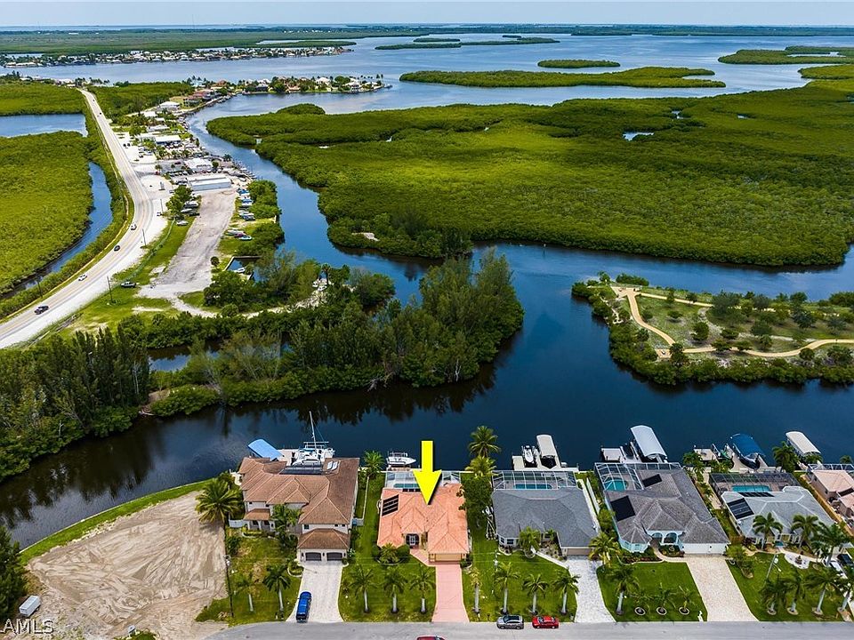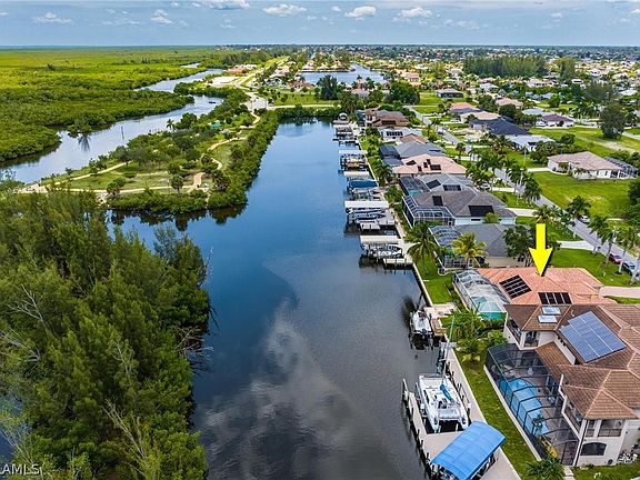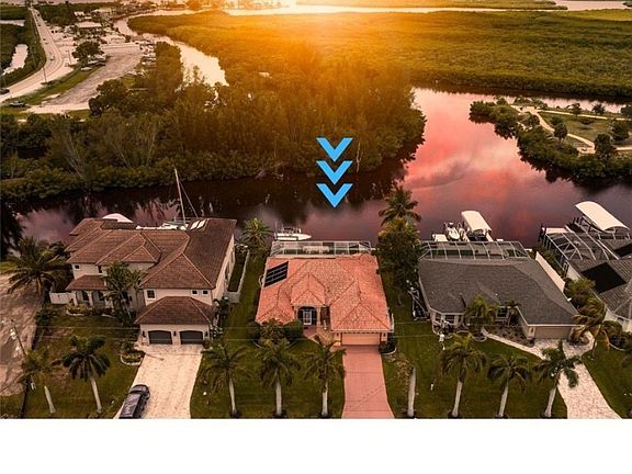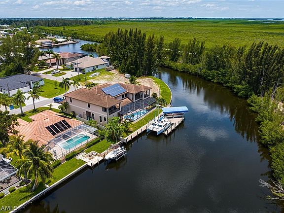 No flooding from Ian! There is so much to love about this spacious 4 bedroom, 3 bath boater's dream home situated in Cape Coral on a one-of-a-kind waterfront lot! This property boasts direct sailboat access to the Gulf of Mexico with incredible views of a wide intersecting canal, preserve islands, Sirenia Vista Park, and all the wildlife that SWFL has to offer. You can be fishing in the gulf in minutes! With western rear views, the sunsets are absolutely breathtaking! Perfect for entertaining or for watching a sunset, the outdoor area includes a screened-in pool, plenty of under-truss space for all of your furniture and an extended pool deck for catching those rays. The lawn leads down to the cantilever, dock and a boat lift. For peace of mind, this property has two newer AC units, water heater and garage door/lift. This home offers plenty of room to spread out with spacious & bright bedrooms, ample storage and neutral tones throughout. The craft room has a murphy bed that folds down for additional sleeping space.