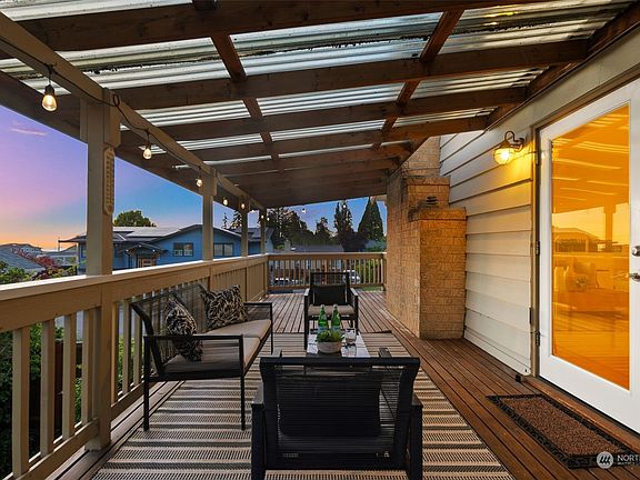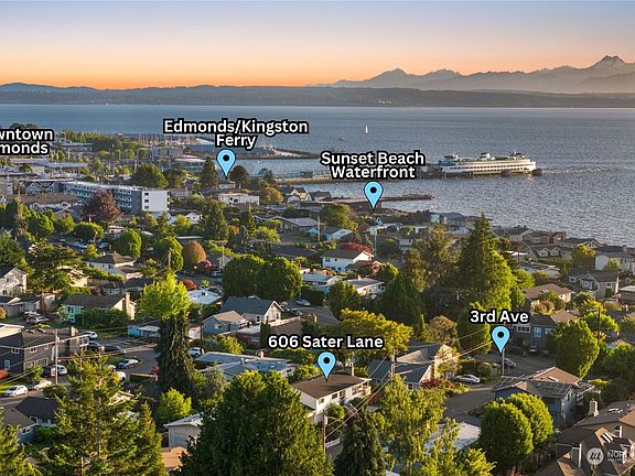 Nestled on Sater Lane's peaceful cul-de-sac off 3rd Ave in the coveted Edmonds Bowl! Enjoy a walk to downtown Edmonds restaurants, cafes, beach & ferry! With peek views of the Puget Sound & gorgeous sunsets, this home fills w/ natural light & has all the space you need! Chefs kitchen w/ stunning solid oak cabinetry, ample storage, a built in work desk & barstool seating connecting the dining & living rooms. Plus wood burning fireplaces upstairs & down! French doors lead to the perfect covered gathering place for summer bbq's & year round living & steps to a fully fenced backyard. Room for 5 vehicles w/ private garage, carport stall, & 2 driveways! Gas line available in street to tap into! Home was pre-inspected. New carpet & fresh paint!