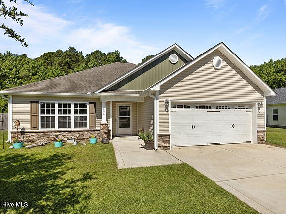 606 Spoleto Court in the Charleston Park neighborhood is now Active! Come and see this wonderful home. Tucked away in a peaceful, tree-lined neighborhood, this charming 3-bedroom, 2-bath single-story home offers the perfect blend of privacy and convenience. Situated in Swansboro, NC, you're just minutes from shopping, Emerald Isle beaches, state parks, farmers markets, Camp Lejeune, Jacksonville, and Historic Waterfront Swansboro. As you enter the front door, you are immediately welcomed into the large living area that extends to the spacious kitchen which boasts ample cabinetry for storage and overlooks the fully fenced backyard. This space is perfect for both cooking and connection. Just off the kitchen, the dining area provides the perfect gathering spot for meals and entertaining. Laminate flooring throughout the main living areas adds warmth and durability, while the primary bedroom features an en suite bathroom for added comfort. The two additional bedrooms share a convenient hall bath. A dedicated laundry room, located just off the attached two-car garage, adds everyday ease to your routine. Whether you're looking for a peaceful retreat or convenience to shopping and coastal attractions, this delightful home is ready to welcome you!