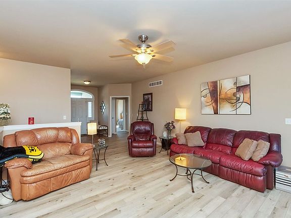 Walk-out ranch in Pedersen Valley Subdivision. New LVP flooring. Kitchen with breakfast bar, stainless steel appliances, Birch cabinets and tile floor. Microwave(2017). Washer and dryer stay. Main floor master suite. Custom Budget Blinds. Newly finished lower level to include family room with TV Projector/screen, LVP flooring and bar area. Additional bedroom and full bath. Large deck and concrete patio.