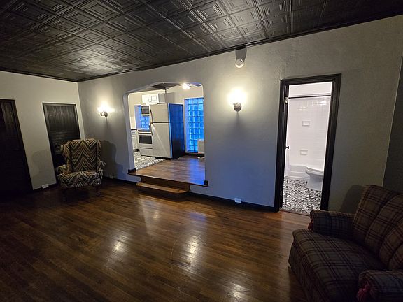 Originally, known as the carriage house for the Cook Mansion that was demolished to create Veterans Memorial Parkway. This charming studio apartment nestled in the Historic District in downtown Evansville was fully renovated. Completely, new bathroom and kitchen with all new stainless steel appliances including microwave, range, and full size refrigerator. The historic studio apartment has a Scandinavian MCM vibe with a touch of urban industrial reflected in the all new matte black metal lightening fixtures and hardware. Original hardwood floors were refinished in the dining and living /bedroom area while the kitchen and bath have newly installed classic black and white tiles. There is ample storage with three closets and just off the kitchen is a quaint dining area with built-in hutch for additional storage. Large sunlit windows allow the apartment to fill with a warm glow. The sweeping veranda on the front of the pillared carriage house is the perfect spot to enjoy your morning coffee while looking out over the vast secluded yard. The carriage house is conveniently located within walking distance to Main Street, River Front Walkway, Evansville Museum, Haynie's Corner, and other downtown attractions. It is a delightful place to call home. Renovated Laundry facility in the basement. Animal friendly rental (Pets must be approved by owner, Initial pet fee $150 per pet, Monthly Pet fee $30 per pet). No smoking. Water included in rent. Sewer included in rent. Trash included in rent. Electricity not included in rent. The apartment is not furnished. Pre-tax income 3X rent. Credit score: 650+. Rent $750. Security Deposit $750. No smoking. Water included in rent. Sewer included in rent. Trash included in rent. Electricity not included in rent.