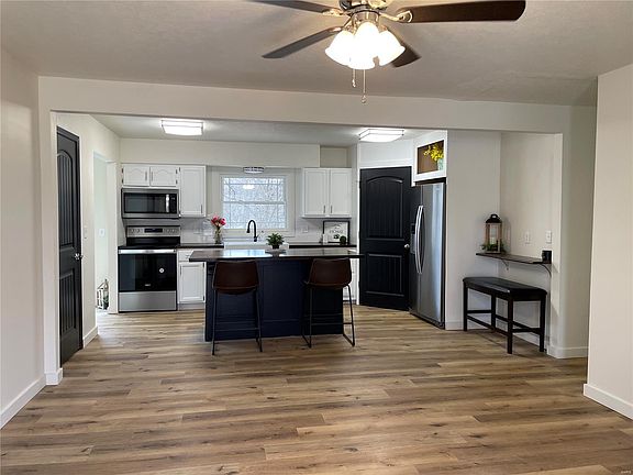 Located towards the end of a cul-de-sac in a tree lined neighborhood within the city limits of Waynesville, this FIVE bedroom, THREE full bath recently renovated home will dazzle you. Featuring luxury vinyl plank floors throughout the main areas of the home and new carpeting in all five bedrooms. The gourmet kitchen is open to the living room and boasts stainless steel appliances, a large farm sink, huge pantry, custom center island and modern lighting. The separate dining area includes an electric fireplace and walks out to the rear deck overlooking your private fenced lot. Three bedrooms including the owner suite are situated on the main level, with an additional two bedrooms, large family room, and third bathroom in the walk out basement. The oversized garage includes a bonus room which could make a perfect shop area or space to park your lawn mower. All of this plus brand new windows, plenty of closets, storage space and a Trane HVAC system, just waiting for you to take a look!