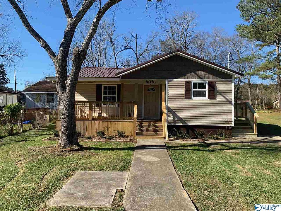 Complete remodel, inside and out of this 1450 sq. ft. bungalow! New electrical, new plumbing, new floors and joists, everything you can think of is new=you are getting a brand new house-house has central heating/cooling, new metal roof, new vinyl siding, new cabinets in kitchen, remodeled bathrooms, freshly painted throughout the house and the list goes on with nice touches including a accent/farm house wall in the bonus room. Attalla school systems- minutes from Attalla elementary. Open floor plan makes the house feel huge. Nice covered front porch to sit on in the evenings, plus a killer garage/workshop in the back that has full electrical in it.