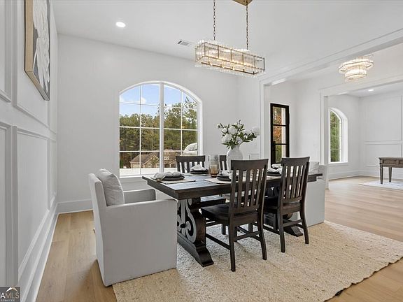Stunning new construction modern luxury awaits at 606 Talmadge Ln in Governors Preserve. This four-sided painted brick residence features 10'+ ceilings and a dramatic living room highlighted by a floor-to-ceiling solid-surface stone fireplace and 3-panel multi-slide glass doors that open seamlessly to the private backyard. The chef's kitchen is meticulously designed with waterfall stone counters, a walk-in pantry, breakfast nook, large dining room, and a butler's pantry with wet bar. This flexible multigenerational layout boasts two primary suites-one on each level-including a superb upstairs suite complete with its own private exterior entrance from the garage. The second floor also features a Jack-and-Jill bath layout with shared access to a charming Romeo and Juliet balcony. Additional functional spaces include a main-level office, an upstairs bonus room, and a versatile room above the garage ideal for a 6th bedroom, media room, or private retreat. All bathrooms showcase granite countertops and high-end fixtures. The property is completed by an oversized garage with epoxy floors and EV charging, and a level backyard perfectly suitable for a future pool. Located in a top-rated school district and minutes to downtown Canton with easy access to Roswell, Alpharetta, and Cumming. This is a rare blend of craftsmanship, comfort, and contemporary design-your next chapter of luxury begins here.