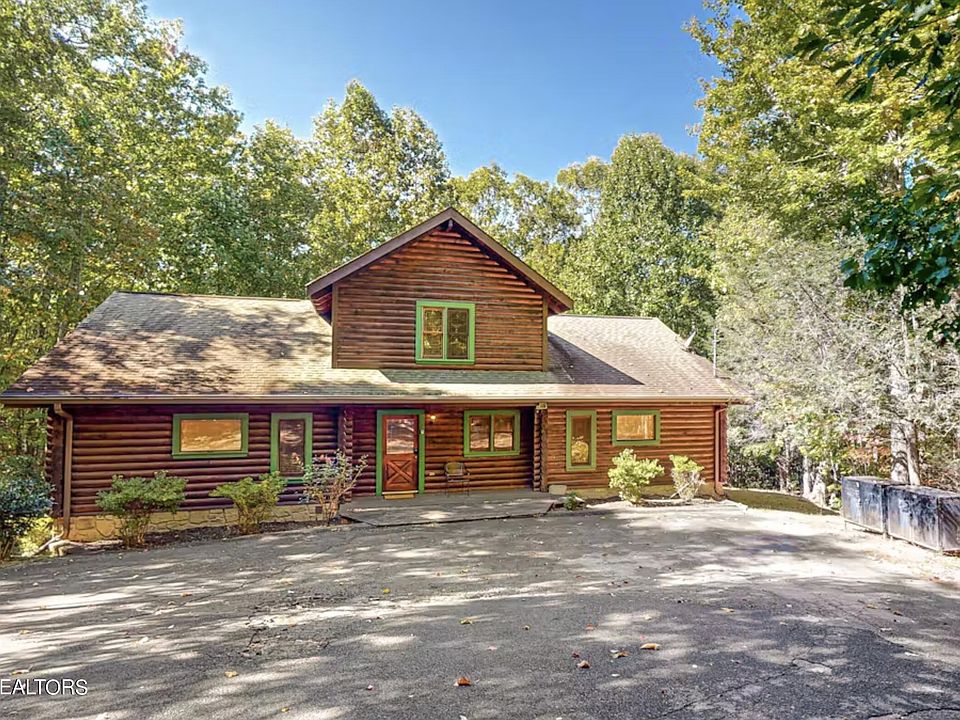 Motivated seller! STR permit applied for with 21 occupants. Discover the perfect blend of privacy and location with this spacious 4-bedroom, 5-bathroom log cabin, boasting over 3,700 sq ft of living space, nestled in the serene and picturesque Cobbly Nob area. This gem is conveniently located just minutes away from the National Park, downtown Gatlinburg, Cosby, and numerous other attractions. Currently part of a successful rental program, this property offers immense potential. Step inside to find a generously sized great room, featuring a fully-equipped kitchen and an open-plan living/dining area centered around a striking masonry fireplace. The cabin includes two master suites, each offering a private bathroom and ample walk-in closet space. A lofted second level introduces a large den/recreation area with an additional bathroom, while the lower level expands the living space with a second den/recreation room complete with a fireplace, a third bedroom with its own closet and bathroom, and an extra sleeping area with a fourth private bathroom. This property affords plentiful indoor and outdoor space. Located at the very end of the road in a secluded and peaceful wooded setting, which provides a tranquil retreat! Just a stone's throw from some of the area's most renowned attractions, including the National Park and downtown Gatlinburg, this cabin also benefits from being part of a well-regarded golf community. Schedule a visit today and see the possibilities for yourself!