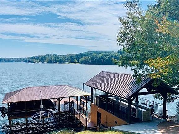 THE GOOD LIFE BELONGS TO YOU. After a day on the lake, grill out, watch the game and enjoy your favorite beverage as outdoor entertaining has reached a new standard with your new covered commercial kitchen. Complete with stainless steel appliances, ice machine, granite counter tops and plenty of seating. 170??? of shoreline include a covered dock, boat slip w lift, dual jet ski lifts and boat house to store all of your toys. This home offers the best indoor and outdoor entertaining venue with secluded privacy and main channel views in a 18???-24??? deep water cove. Main level Owner???s suite w sun room and mile wide lake views. Choose between the jetted tub, sauna or hot tub to finish off the day. Open living area with dramatic bead board ceiling and ceramic tile plank floor flows beautifully into the kitchen w granite counter tops and stainless-steel appliances. Family room deck is the perfect spot for sunsets over the water. Lower level with 2 additional sleeping areas share a delightful bath.