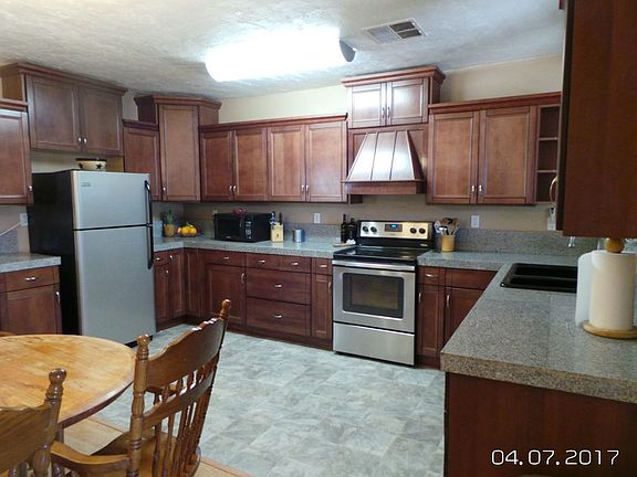 This vintage charmer comes complete with large bedrooms, a beautifully remodeled eat-in kitchen and a very large in-town lot. There is plenty of counter space and cabinetry in the kitchen while the full bath retains some of its original features. There is an enclosed porch area off the kitchen with a small study. It has a split bedroom floorplan and the largest bedroom has a massive walk-in closet. The lot is very large for the area and has a row of pine trees for summer shade from the western sun along with a pecan tree. There is plenty of space to add on to the house or build a shop/garage and for RV parking. The circular driveway makes parking easy and there is a large covered front porch to relax on. The backyard is partially fenced and there is a large storage shed there as well. A new roof was recently installed and the exterior painted.