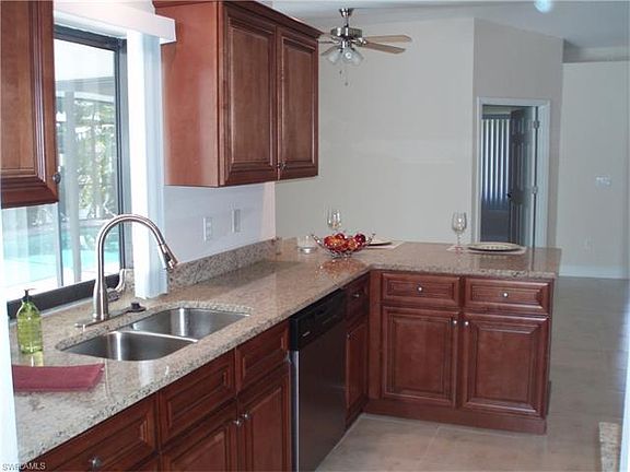Great Cape Coral location! AMAZING SUNSETS over the water!! Gulf access pool home featuring NEW kitchen with soft touch drawers & wood cabinets, granite counter tops, stainless steel appliance package, pass though to the large screened pool area, NEW 18" ceramic tile in kitchen, family room & pool bath. Large master-suite with pocket sliders to the lanai, large walk-in shower with multiple shower heads. NEW AC, water heater, washer/dryer. Guest/pool bath includes new vanity, commode and bath tub. Enjoy entertaining and relaxing POOLSIDE with pocket sliders from the master-suite, formal dining-room, & breakfast area, 5 1/4 baseboards throughout, freshly painted exterior AND interior. Inside laundry room with sink, cabinets and NEW washer/dryer. Tons of storage in the garage with workbench. Fenced backyard!! Tropical landscaping, DELICIOUS fruit from the Mango, Banana & Avocado trees! Make your appointment to see this home today.