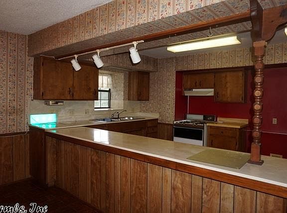 Huge living room, large kitchen/dining room, lots of cabinets and counter space. Nice stainless 3 compartment sink and walk in pantry with shelving, master bedroom is huge, has a walk in closet, there is an den with a built in wall unit with desk, there are shelves and a workbench plus a sink in the utility room. The 3rd bedroom and 1/2 bath off the utility room. This house has storage everywhere. Nice storage bldg and a slab where a shop used to be. This is an estate & is sold as is. Agents see remarks