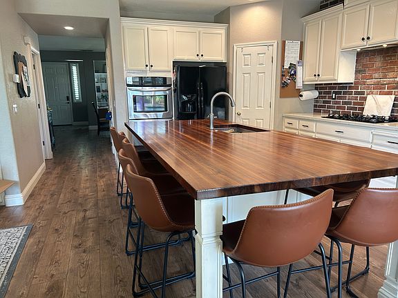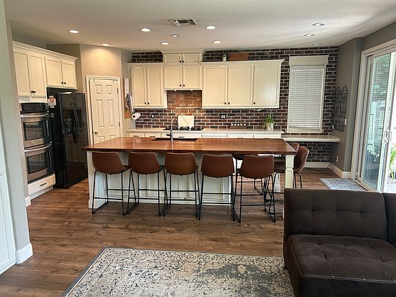 Beautiful five bedroom home now available in Ripon. Easy care with all new LVP floorings, three full bathrooms, 2 car garage, and a fabulous backyard with a covered patio, perfect for entertaining. There are two living rooms plus a dining room. The kitchen has a huge butcher block Island with room for eight barstools and a pantry. Laundry room with hook-up for gas or electric dryer. Spacious master bedroom has a large walk-in closet and large en suite bathroom with soaking tub, shower, and two sinks. Three additional bedrooms and additional bathroom (shower/bath combo) upstairs. One bedroom downstairs and a full bathroom downstairs (walk-in shower only.) Easy access to HWY 99 for commuters. Great schools nearby with Ripon Unified and Ripon Christian. There is a park perfect for children, pets, or just walking only 1 block away. Small shed for bikes to keep your garage clean. There are many great restaurants in town within a mile, plus two grocery stores and a Farmers Market once a week during the warmer months. Lawn maintenance included. MID for electric (and whole house fan.) Pet is negotiable for cat or small dog only. Available as early as March 14. Showings by appointment only. Lawn maintenance included. One year lease required. No smoking. Renter pays all utilities. (City of Ripon, MID, PG&E ). Only one pet allowed.