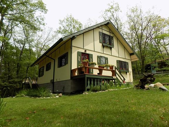 Chalet on Mount Maria! True pride in ownership with this beautiful 3 Bedroom, 2 Bath home. Nestled on just over 1/2 an acre of property with mature trees and privacy. 1,512 square feet of bright, open living space. 1 bedroom & 1 full bathroom on the main level with 2 bedrooms and 1 full bath upstairs. Partially finished walk out basement has a 6.5' sliding glass door wall that leads to a 10' by 40' covered patio. Above the patio is a 10' by 40' deck with entry to the living room on the main level. This home has been meticulously taken care of & well maintained. Minutes away from local restaurants, White Pine National Golf Course & the south bay DNR launch to enjoy year round water & winter sports at Hubbard Lake. 30 minutes to Alpena.