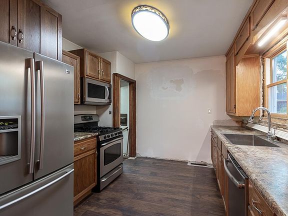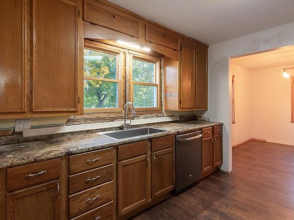 Affordable home nestled on a double corner lot! Great kitchen with stainless steel appliances, large dining and living room area and a main floor office that could be converted to a bedroom if desired. 2 remodeled full baths and a partially finished lower level with lots of potential for additional finished space. Newer 24x24 garage that's been insulated and an additional 16x24 garage with carport. Located in a wonderful neighborhood with tons of potential throughout!