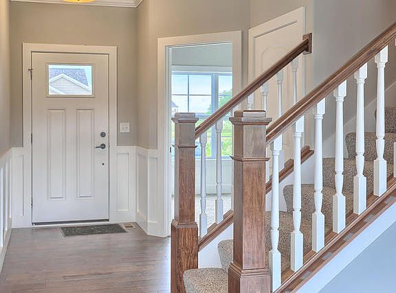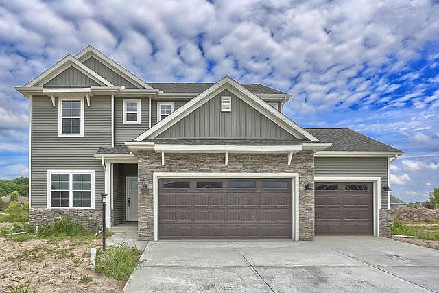 New build! Be the first owner of this 4 bedroom 2 1/2 bath home with basement! First floor features hardwood floors with gorgeous stone gas fireplace with large windows featuring beautiful view of the lake. Kitchen includes a large island for seating, granite counter tops, many cabinets and large pantry for extra storage space. Half bath and mudroom off kitchen. Master bedroom includes a large walk in closet, the windows in the Master provide an encompassing view of the lake. All bedrooms are nicely sized and fourth bedroom has a walk in closet. Beautiful granite double sinks are in both upstairs bathrooms. Stylish lighting throughout the home. Patio off Living area provides views of the large backyard and lake. Basement is plumbed for a bathroom. Three car garage for all of your storage needs.