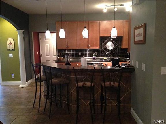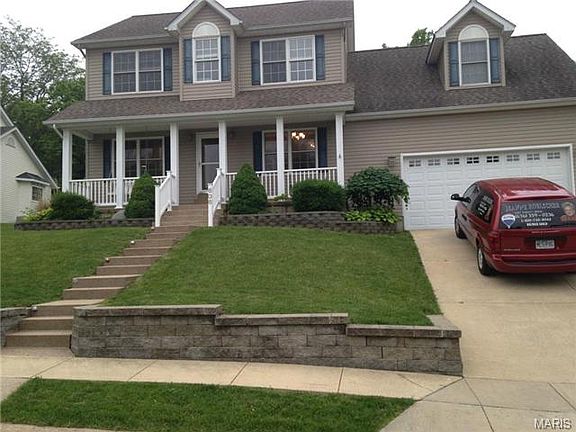 Sitting on the hill is this gorgeous home featuring a very over-sized 2-car garage, add. parking to the side, partially fenced in backyard trex deck. Remote for awning for sunny afternoons spent reading a good book! Extensive landscaping throughout the grounds, awesome views off the front porch! Inside you will find a formal living and dining area w/ columns & french doors, large kitchen with breakfast bar and huge amount of 42 inch maple cabinets and the appliances stay! An abundance of light comes in from numerous windows in the hearth area and the great room! In the upstairs you will find a large master suite with coffered ceiling, a master bath to die for & a walk-in closet! Get ready for movie night in the bonus room above the garage with built-in niches, window seat, surround sound wiring, movie theater seating, speakers, screen and projector included! The basement offers extensive custom tile work w/ fireplace, bar w/ granite counters, another full bathroom, pool table stays.