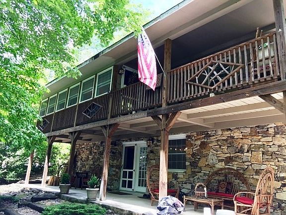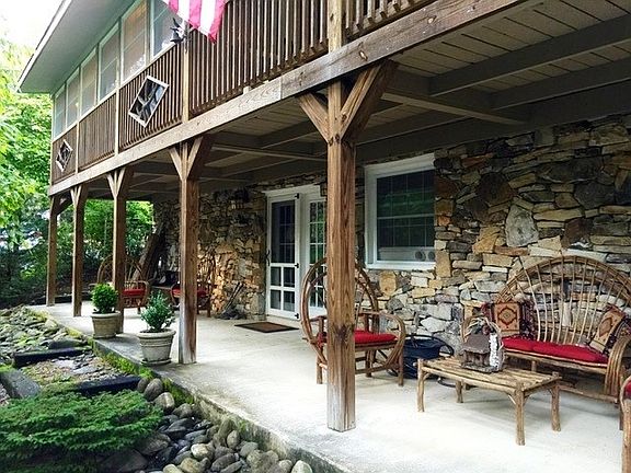 Wonderful, nestled in the woods, FURNISHED 4 bed 2 bath mountain cabin with rock and hemlock exterior, 2 fireplaces, hickory scraped wood floors, custom oak cabinetry, granite counters, modern kitchen, great room, and spacious dining area with unique bark walls; ground level wet bar with mother-in-law suite potential! Split floor plan with 2 bedrooms on each level. Dual compressors for the mini-splits! Setting is absolutely stunning -- you can hear the South Toe River below, with some of the best trout waters in the US just yards away. Walk to one of the nation's finest golf courses. Almost surrounded by National and State Forests. Minutes to the Blue Ridge Parkway. Less than an hour to Asheville or Boone/Blowing Rock.