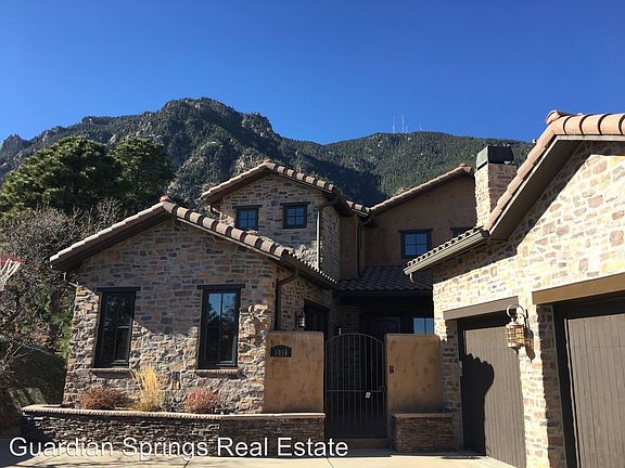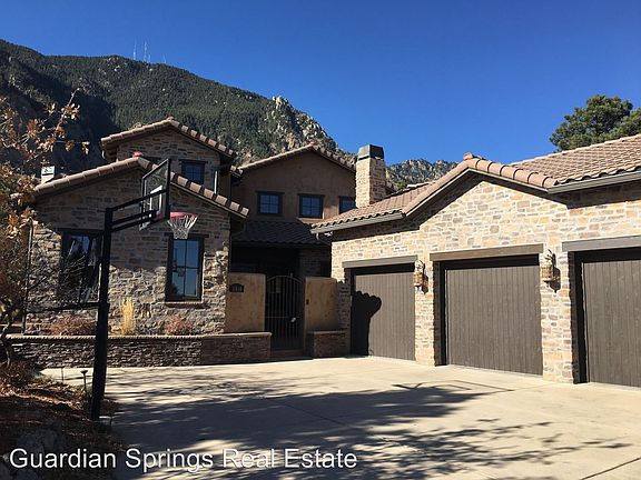 EXPANSIVE LUXURY HOME IN HIGHLY DESIRABLE SPIRES NEIGHBORHOOD IN AWARD WINNING D12 SCHOOL DISTRICT. THIS SPRAWLING HOME WITH VIEWS OF CHEYENNE MOUNTAIN HAS ALMOST 6000 SQUARE FEET. TUSCAN INSPIRED WARM AND ELEGANT WITH 5 BEDROOMS, 6 BATHROOMS. The first LEVEL INCLUDES MASTER SUITE WITH PRIVATE JACUZZI ACCESS, GUEST SUITE, OFFICE, FORMAL DINING ROOM, ESPRESSO MACHINE, THERMADOR APPLIANCES AND SUB-ZERO REFRIGERATOR. THE SECOND LEVEL FEATURES 2 LARGE BEDROOMS EACH WITH FULL BATHS DIVIDED BY A WONDERFUL "HOMEWORK" LOFT WITH BUILT-IN DESK AND CABINETRY. THE LOWER LEVEL FEATURES ANOTHER BEDROOM SUITE WITH FULL BATH, THEATRE ROOM WITH ENTERTAINMENT BAR, FITNESS ROOM AND GAME ROOM. THE ENTRANCE BOAST A ROMANTIC COURTYARD WITH A STONE FIREPLACE. THE REAR PATIO HAS A GRAND VIEW OF CHEYENNE MOUNTAIN AND THE SIDE PATIO IS NESTLED AMONGST BOULDERS. SOUTH FACING 3 CAR GARAGE WITH PLENTY OF STORAGE.