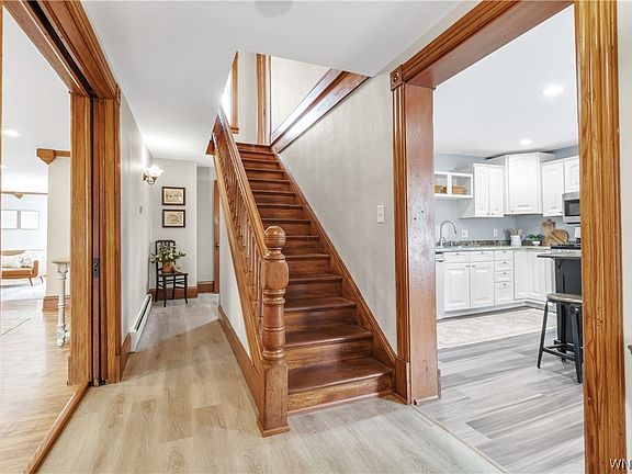 Updated Historic charmer on 1.77 acres in Starpoint Schools. This home was built in 1850 has been updated to maintain its historic integrity of natural woodwork & original staircase while receiving important upgrades such as professional basement waterproofing, new boiler '22, insulation & wiring. At approximately 2300 sq ft with 4 beds and 2 full baths, you will have all the space you need. Kitchen w/island, entertainment size living and dining room, oversized laundry room, foyer, sliding glass doors to backyard & a full bath complete the 1st floor. 2nd floor is divided into 2 wings. Master bedroom is pleasantly grandeur in size with a walk in closet. The other wing of the 2nd floor holds the remaining 3 bedrooms and full bathroom. When you pull up to the property, you are greeted by a convenient horseshoe driveway and 2 car garage with brand new overhead doors and roof. Stamped concrete walkway leads you to the incredible historic porch. Take a walk in the very spacious yard. A move-in ready chicken coop is out back. Come experience this beautiful home! Showings allowed immediately. Open House Sunday 03/26 from 12noon-2pm. Negotiations to begin 3/28 @ 2pm.