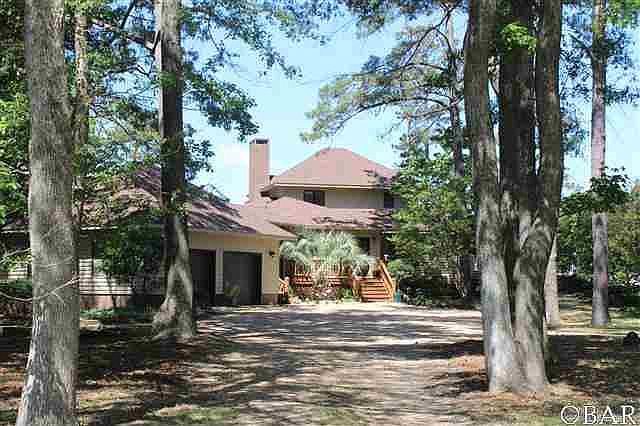 Back on the market - three good inspections (house, septic, termite) but buyer couldn't get his loan. Priced to sell - bring offers! Wow - 150 feet of Soundfront on the quiet North end of Martin's Point - a cozy home on 1.5 lots (about 1 acre in total) so you have lots of privacy on both sides located in a wonderful gated residential neighborhood in Kitty Hawk. "Diamond in the Rough" on a Pot of Gold location! Bring "I can update it my way" minded buyers! Price reduced to accommodate for updates although the house is very live-able as is! New roof in 2012 as well as a new bulkhead to help protect from sound waters. The 7/8-foot elevation of this home/lot protected it from flooding in the last storms - nice! The library can be turned into a 4th bedroom easily. A two-car garage gives your cars and toys protection with a large c-shaped drive for easy entrance. This home was one of the first built in Martin's Point for the parents of the developer of the neighborhood - solidly build with lots of personality. 3 Bedrooms each with a view of the sound- and an office/ Library that could be converted to a 4th bedroom by adding a closet. The master is on the ground level with two large cedar closets, a vanity sink and attached master bath with both a shower and jetted tub. The master bedroom also has it's own door out to the back yard. Upstairs are two bedrooms, each with a sliding glass door that leads to a wonderful deck for sunsets or morning coffee...and with a full bath so that your guests or family have their extra privacy. The views of the Currituck Sound are amazing from all rooms with a unique sunset every night for you to enjoy. Lots of decks, a great inground pool and dock with steps into the sandy bottom sound add to your outdoor enjoyment. A kayak ramp gives you easy access for your kayak, crabbers or sunfish sailboat - bring your toys - you will need them!