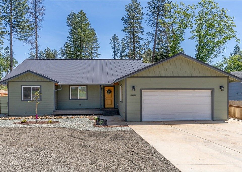 Welcome to 6060 N. Libby Rd, a remarkable new build nestled in the tranquil beauty of Paradise! This beautiful property boasts an expansive .58 acre lot, backing to a picturesque seasonal creek, creating a peaceful and scenic setting. With innovative construction features and this fantastic layout, this home redefines quality and comfort. Constructed with 2x6 exterior frame construction, this home is designed for durability and energy efficiency. The metal roof, seamless gutters and Valor gutter guards, and fireproof Vulcan vents ensure long-lasting protection and safety. Head inside and you'll be greeted by an open living space where comfort meets productivity. The bright and open living area is perfect for relaxation and entertaining, with large windows that flood the space with natural light. Adjacent to the living area, you'll find a fantastic office space - ideal for remote work, creative projects, or a focused study area. The beautifully designed kitchen was created for practicality and style, featuring a butcher block-style kitchen counter, gas appliances, and a designated dining area overlooking the expansive back porch. Enjoy the comfort of 3 bedrooms and 2 bathrooms, with ceiling fans, window blinds, wood floors throughout the main living areas, and carpet in the bedrooms for added warmth. The smooth wall texture finish creates a clean and modern aesthetic throughout the home. The primary suite is your retreat from the daily hustle and bustle and boasts an en-suite with a beautifully tiled shower with tile flooring, offering a spa-like experience and the on-demand hot water heater ensures you never run out of hot water. Step out onto the expansive deck with ceiling fans perfect for a gathering space or relaxing with your morning coffee to take in the serene views of the creek and surrounding landscape. The front yard is beautifully landscaped with drip sprinklers, ensuring low-maintenance care and inviting curb appeal and this blank slate backyard allows you to create your dream space! But that's not all, this home offers a perfect space for RV Parking with additional side-road access via Pine Creek Way! This home has it all! Don't miss your chance to own this exception new home, make an appointment and discover the quality craftsmanship, premium upgrades and scenic beauty that away you at 6060 N. Libby Road!
