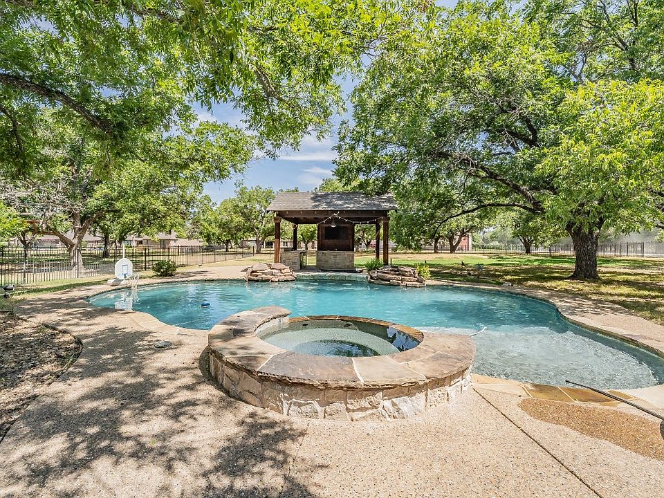 - Pool features: Cabana, Gunite, Heated, In Ground, Pool, Pool/Spa Combo, Waterfall