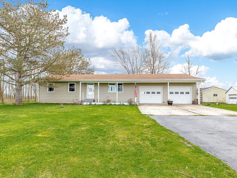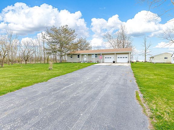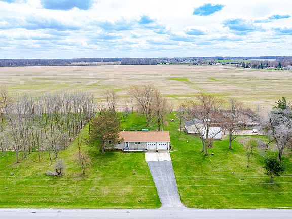 COUNTRY LIVING!!! 3BR 1Bath Ranch with a full basement sitting on a beautiful 3 acres of land across from Hidden Creek Golf Course! Backyard is already fenced in for pets. Some of the upgrades include: Front porch, fence, interior/exterior paint, floors, water heater, kitchen counter, entry door, all new bathroom, trim, seamless gutters, water softener w/drinking water system, all windows are new and have a lifetime warranty transferable to new owners. Home has a 2 car attached garage plus a 1 car detached garage/workshop that has chicken coop and area that is fenced in and used as shelter for pigs. Great for 4H Projects! There are many fruit trees and wooded area on the property. Conveniently located close to I-75 . Perfect place to enjoy the sunsets, beautiful view of the golf course or take a short walk to the Sugar Creek Apple Orchard.