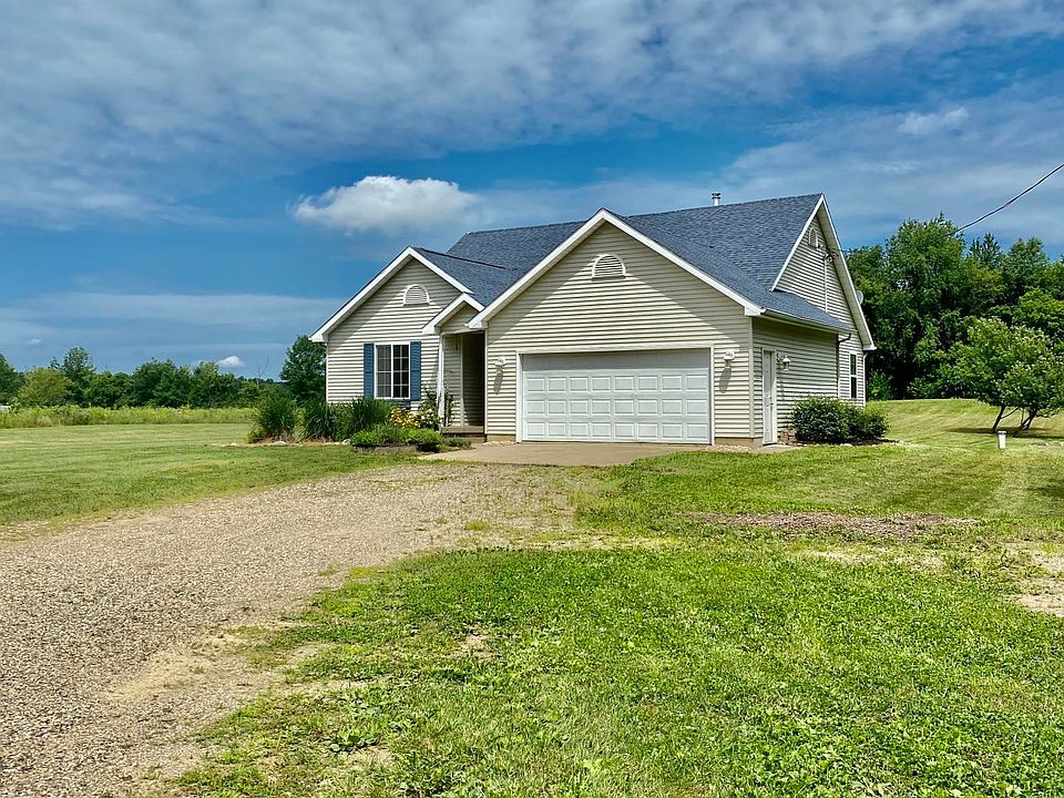 You want country? Wide-open spacious, split floor plan with all new paint and hardwood flooring. Welcoming entrance into the over sized living room, dining, and kitchen all connected. Basement is ready to be finished with a fireplace, and framed in ready for your special touch with egress windows. Please don't overlook this beauty, all hidden behind a row of trees and on 3 acres.