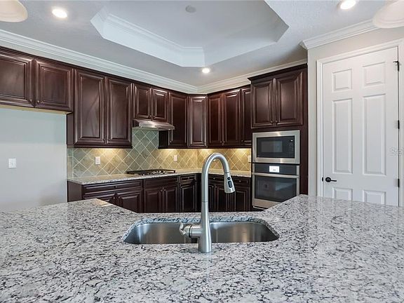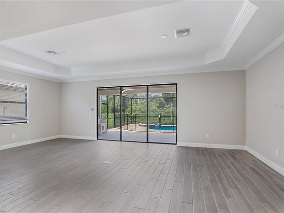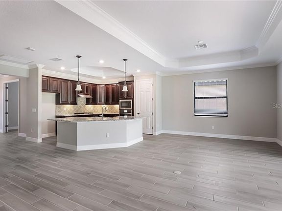 - Interior Features: High Ceiling(s), Open Floorplan, Stone Counters, Walk-In Closet(s), Crown Molding, Kitchen/Family Room Combo, In Wall Pest System, L Dining