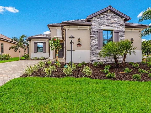 Under Construction. The Victoria is a home with 1,850 square feet of living space. This home features upgraded cabinets, Upgraded wood look tile throughout, summer kitchen and pool/spa overlooking a preserve. This private split plan with 2 bedrooms + den offers 2 bathrooms. The luxurious master suite features a tray ceiling, private lanai access and elegant master bath with dual vanities and ample storage. The airy open-concept kitchen, dining room and great room are steps away from the expansive covered lanai with summer kitchen, delivering the best of indoor/outdoor entertaining space! The den makes a perfect home office or hobby room. Side-load garage offers plenty of space for cars and storage. Lakewood National is a golf community that offers amenities for every lifestyle. Community features spa, resort-style pool with waterfall, fitness center and Tiki Bar. Main Clubhouse currently under construction. Come live like your on vacation! PLEASE NOTE: The photos are of a similar property with the same floor plan and are for display only. The home is still under construction and actual photos are coming soon. 4,500 Capital Distribution fee is charged by builder for reserves. A min. $500 restaurant fee is req - to be billed by HOA. TaxID/property tax dues to be verified before closing.