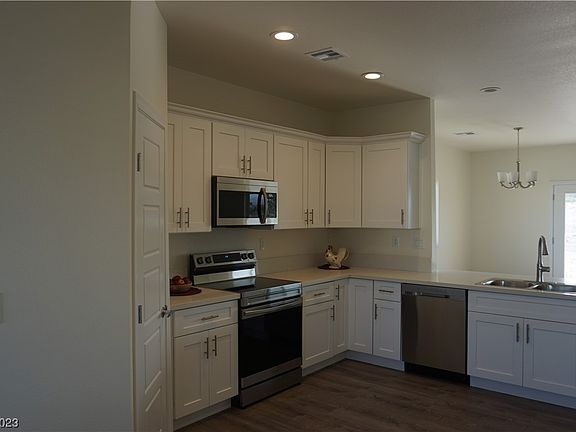 ***GORGEOUS NEW CONSTRUCTION*** Exquisite views are just the beginning of what this luxury, custom home affords. This 3 bedroom, 2 bath homes sits on almost an acre that includes RV parking. There are beautiful, luxury life proof floors throughout, that gives this home a warm, rich atmosphere. The spacious kitchen has custom cabinetry, quartz countertops and stainless steel appliances. Any home chef would love to have this space to create and entertain. This home continues to deliver high-end finishes and touches everywhere you look. This home includes a finished 3 car garage. This beautiful home won't last long!! Quick commute to Creech AFB, The Test Site, Indian Springs Prison and North Las Vegas!