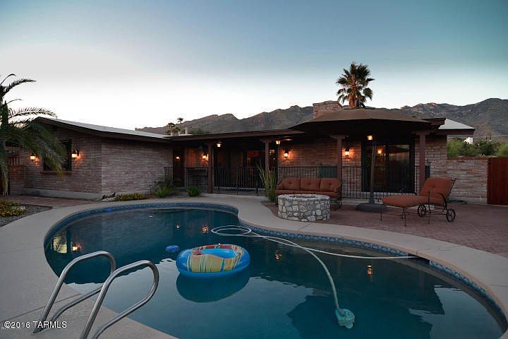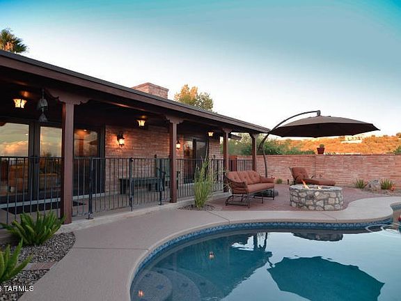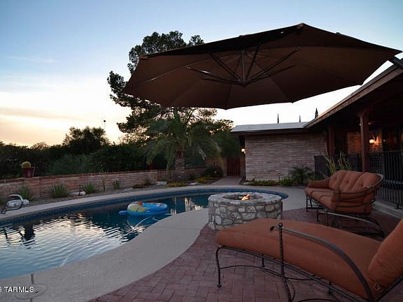 Located at the base of the Catalina mountains sits this beautifully remodeled home on a mature vegetated corner lot. Rustic burnt adobe construction. Rich earth tone tile floors are used throughout. An abundance of beautifully detailed cabinetry & granite counter tops have been used in the kitchen as well as the bathrooms. This home has a perfect split floor plan for comfortable living & entertaining. Mountain and city views from three covered patios, wood sash windows, solid wood doors, class 5 granite, travertine bathrooms, 5 burner gas stove, built in sound system, built in vacuum system, and a pebble tech pool.. Truly a special home with lots of custom features.